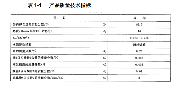 裝置產(chǎn)品質(zhì)量符合《國(guó)家標(biāo)準(zhǔn)GB/T 7814-2008 工業(yè)用異丙醇》的規(guī)定。