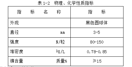 催化劑的物理、化學(xué)性質(zhì)指標(biāo)列于表1-2中。