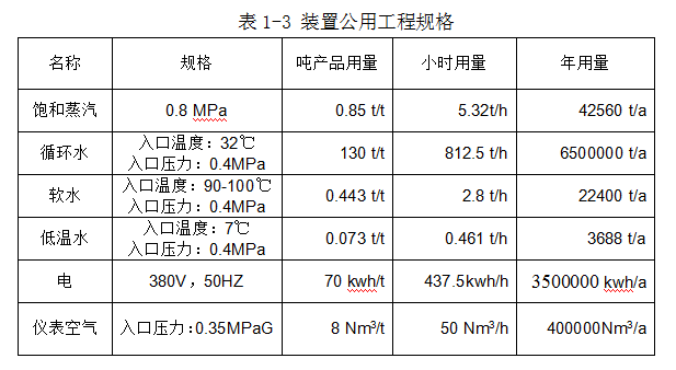 1.5公用工程規(guī)格