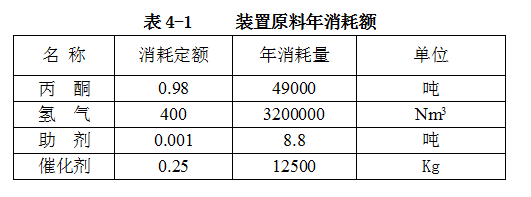 丙酮加氫生產(chǎn)異丙醇原材料及公用工程消耗定額。