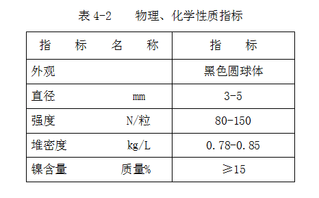 催化劑的物理、化學(xué)性質(zhì)指標(biāo)列于表4-2中。