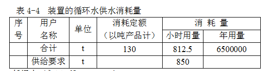 裝置的循環(huán)供水量見(jiàn)表4-4。