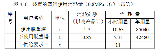 裝置的蒸汽使用量見(jiàn)表4-6。