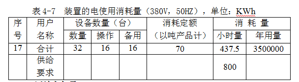 裝置的電使用量見(jiàn)表4-7。