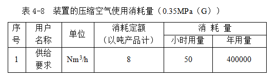 裝置的壓縮空氣使用量見(jiàn)表4-8。