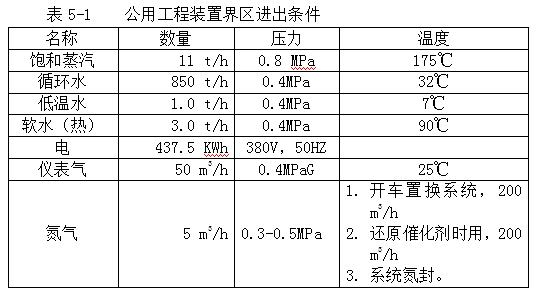 5.1公用工程裝置界區(qū)進(jìn)出條件