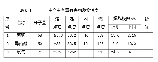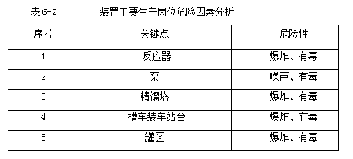 生產(chǎn)過(guò)程中裝置有毒有害物質(zhì)物性。詳見(jiàn)表6-1。