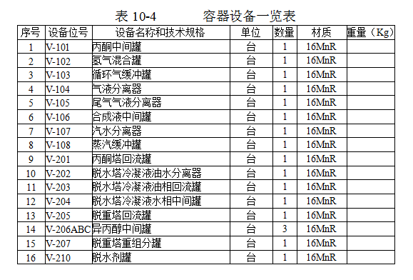 10 工藝設(shè)備表