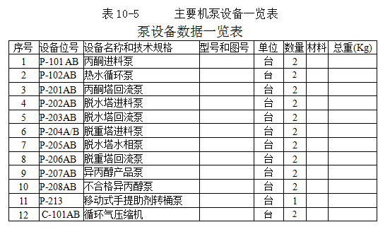 工藝設(shè)備見(jiàn)表10-1、10-2、10-3、10-4、10-5、10-6。