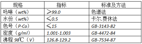 產(chǎn)品嗎啉質(zhì)量可以達到世界先進水平產(chǎn)品標(biāo)準(zhǔn),本技術(shù)可實現(xiàn)的產(chǎn)品質(zhì)量規(guī)格如表2。