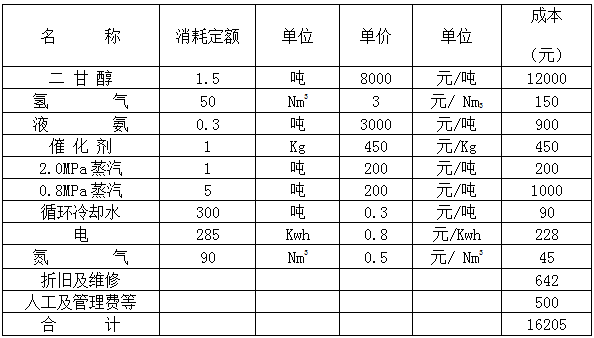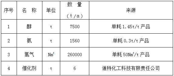 本項目生產(chǎn)所需主要原料為二甘醇、氨和氫氣。原料用量及規(guī)格分別見表。