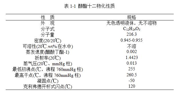醇酯十二主要物化性質見表1-1。