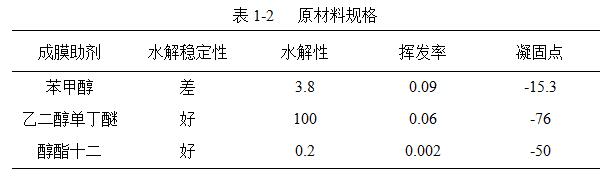 醇酯十二與其它成膜助劑相比較,水溶性小,且容易被乳膠離子吸收,可以直接接觸,更易于對膠粒的溶脹;醇酯十二的揮發(fā)速度低,成膜前保留在水性漆涂層中,溶劑作用不會受到水的揮發(fā)影響,成膜的單釜連續(xù)性好;而其又具有適宜的揮發(fā)度,在水性漆成膜后短時間內完全揮發(fā)掉,不會影響水性漆配方設計所預期的硬度和光澤,如表1-2。