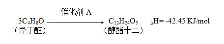 在醇酯十二反應器中,異丁醛在特定的溫度和壓力條件以及液體縮合催化劑A的催化作用下,進行縮醛反應生成醇酯十二(CS-12)。