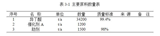 本項目生產所需主要原料、用量及規(guī)格見表3-1。