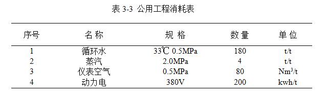 公用工程消耗詳見表3-3。