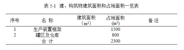 裝置區(qū)內建、構筑物占地面積及建筑面積見表5-1。