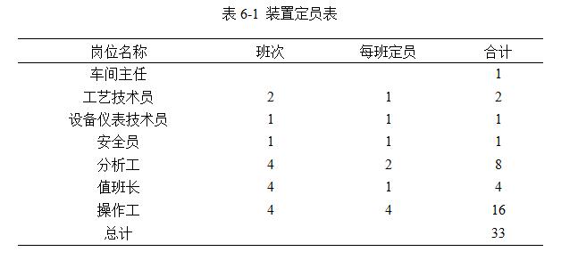 裝置定員不考慮行政管理人員,設備維修維護人員。
