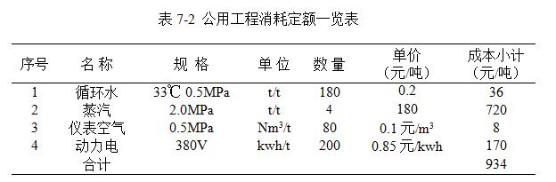 公用工程消耗詳見表7-2。