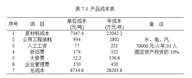 產品成本表見表7-3。