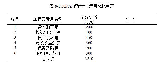 30kt/a醇酯十二裝置總概算見表8-1。