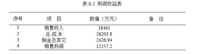 本項目利潤與收益見表8-2。