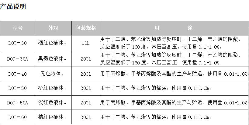 用于丁二烯、苯乙烯等加成等非聚合反應時,丁二烯的阻聚,反應溫度低于160度。